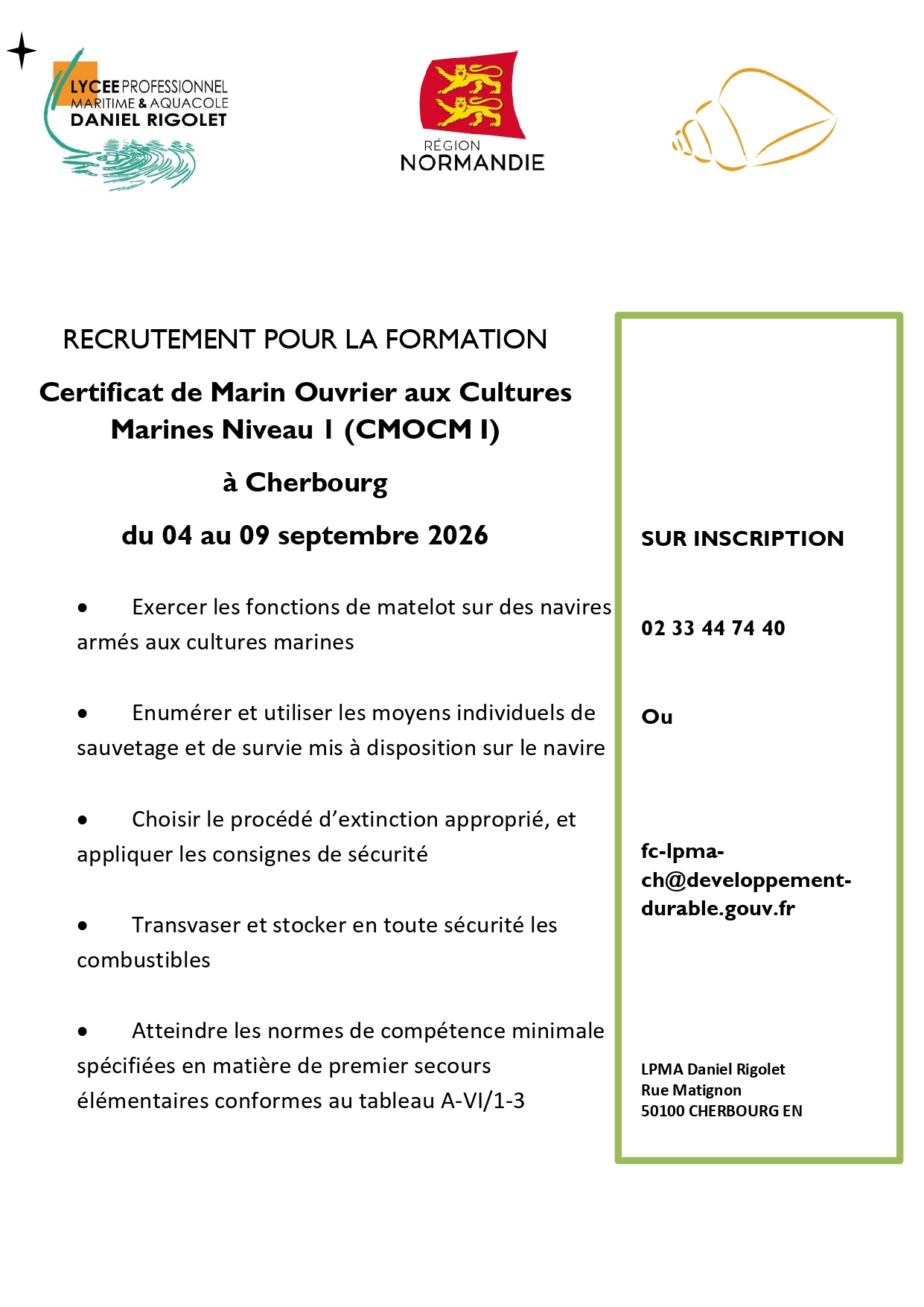 Le mercredi 13 septembre une journée d'intégration pour les 2nde et CAP1 a été organisée. Au programme : découverte des ports de la Hague et tournoi de foot